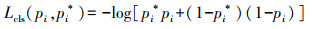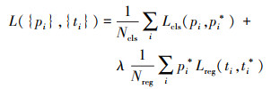 (1) 式中,i表示第i个锚点;pi表示锚点为目标的概率;pi*为对应真实目标框的标签值(正样本为1,负样本为0);ti为候选区域框的4个参数化坐标向量;ti*为对应真实目标框的坐标向量;Ncls和Nreg表示规范化参数。对于分类损失Lcls和回归损失Lreg